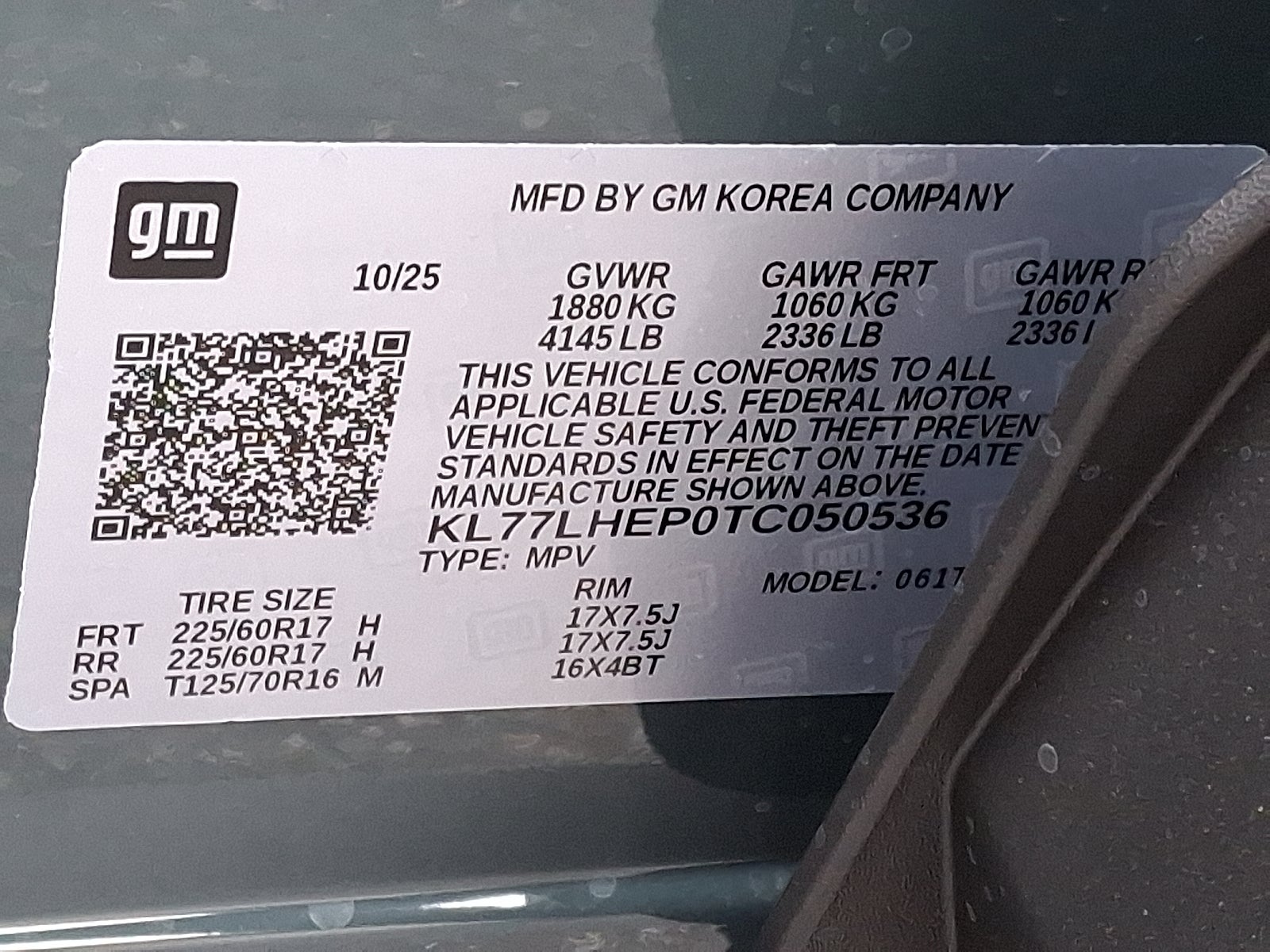 - GVWR, 4145 lbs. (1880 kg)